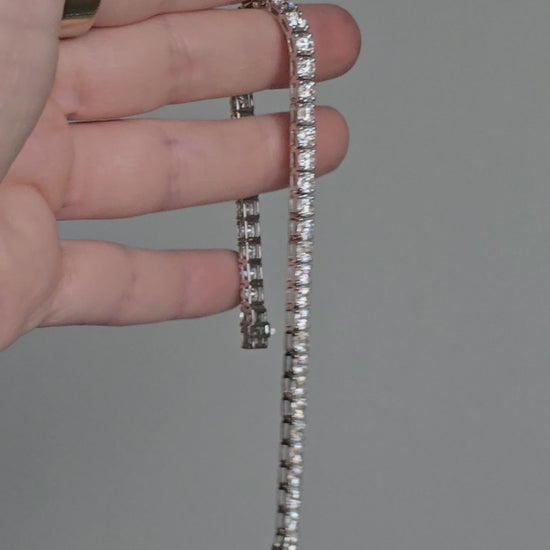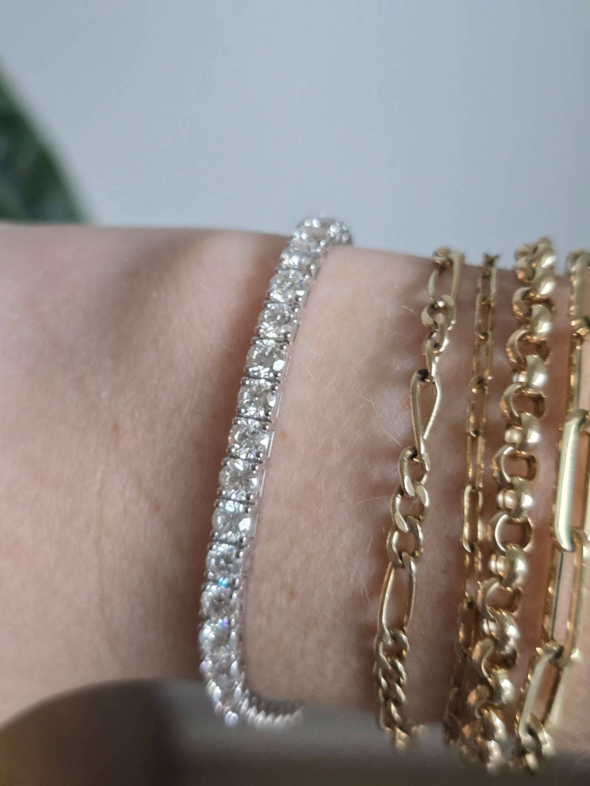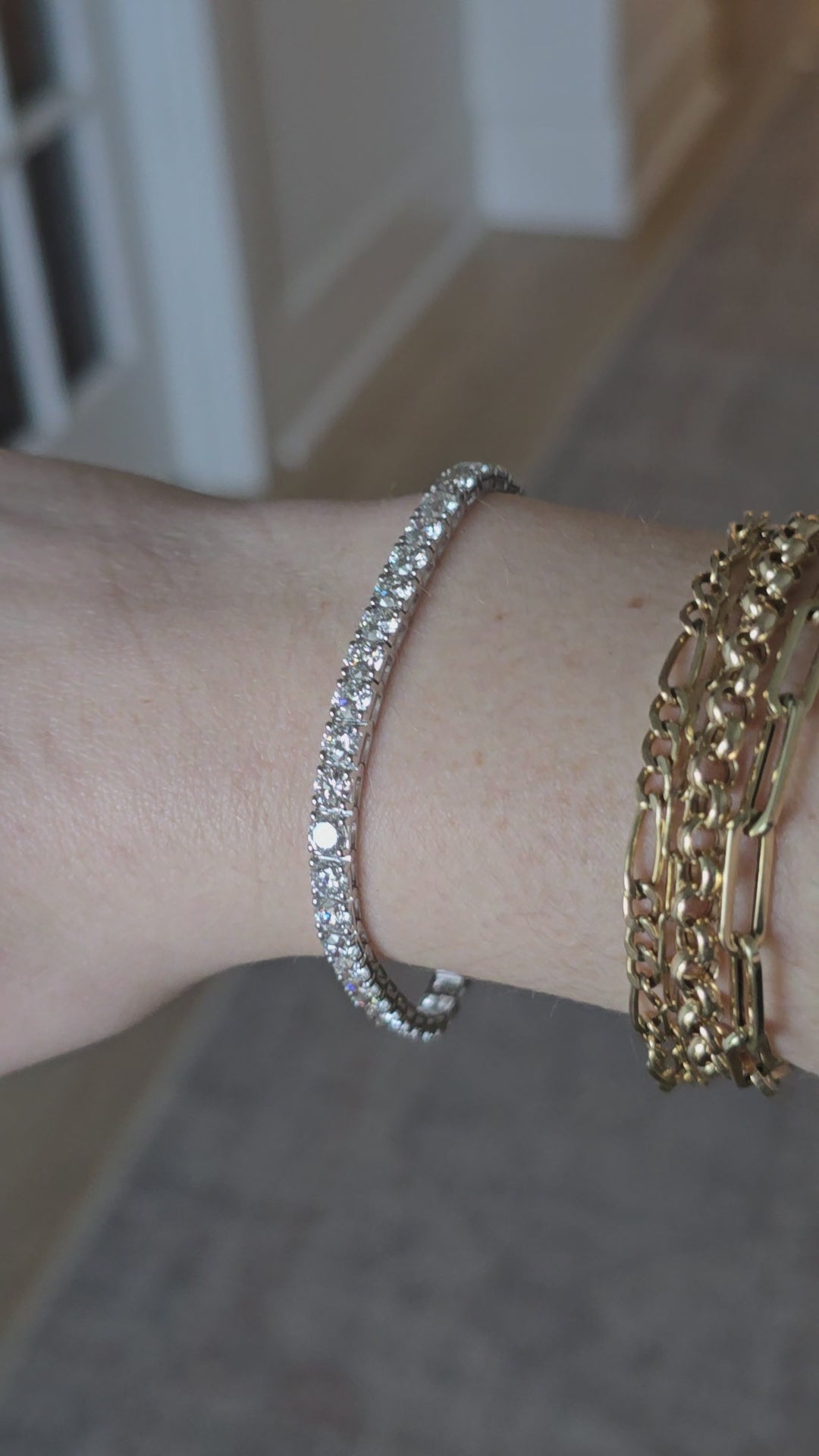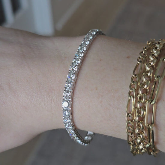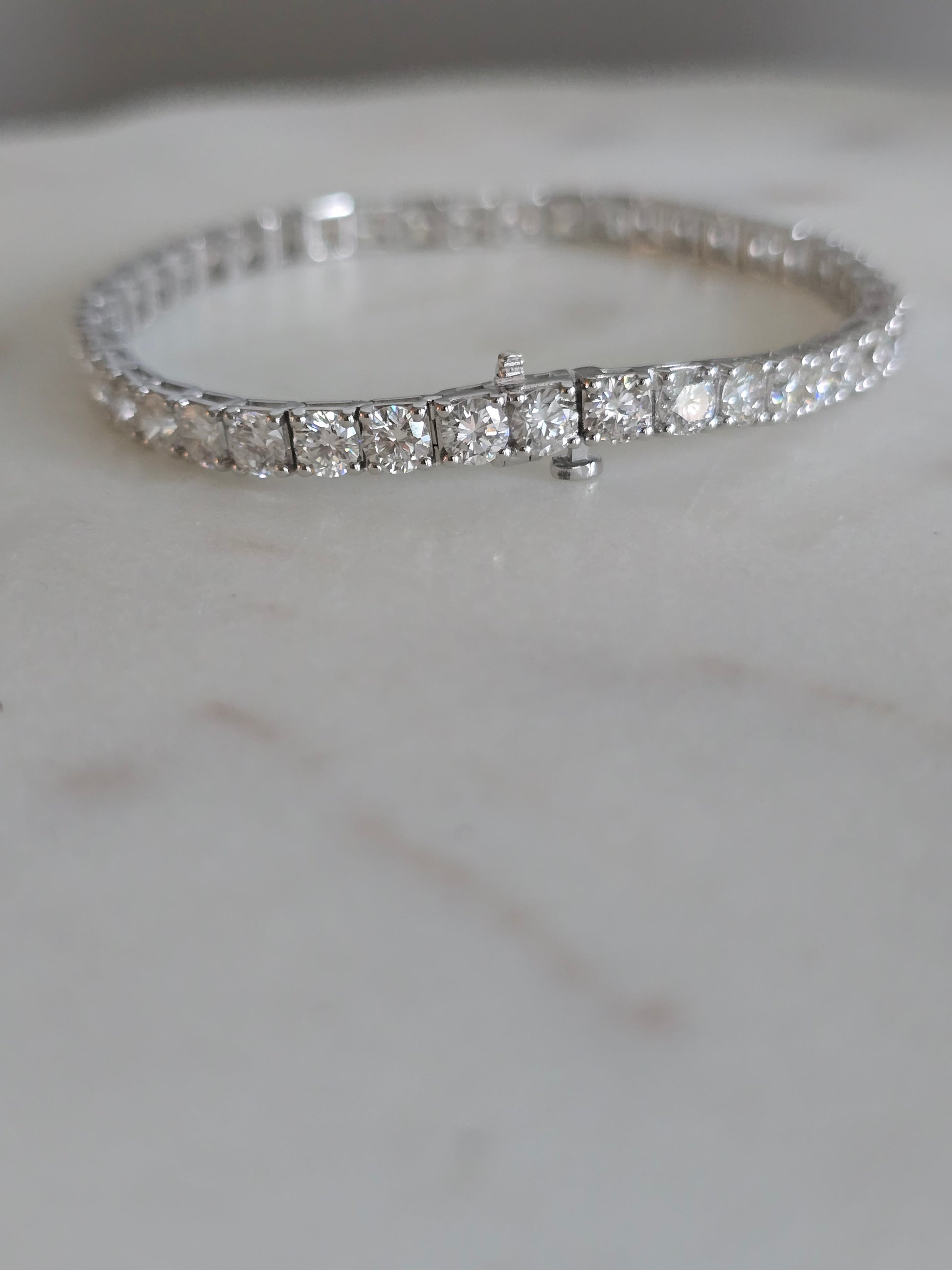 This extraordinary diamond bracelet features 10 total carats of round brilliant laboratory-grown diamonds, beautifully set in 14kt white gold.