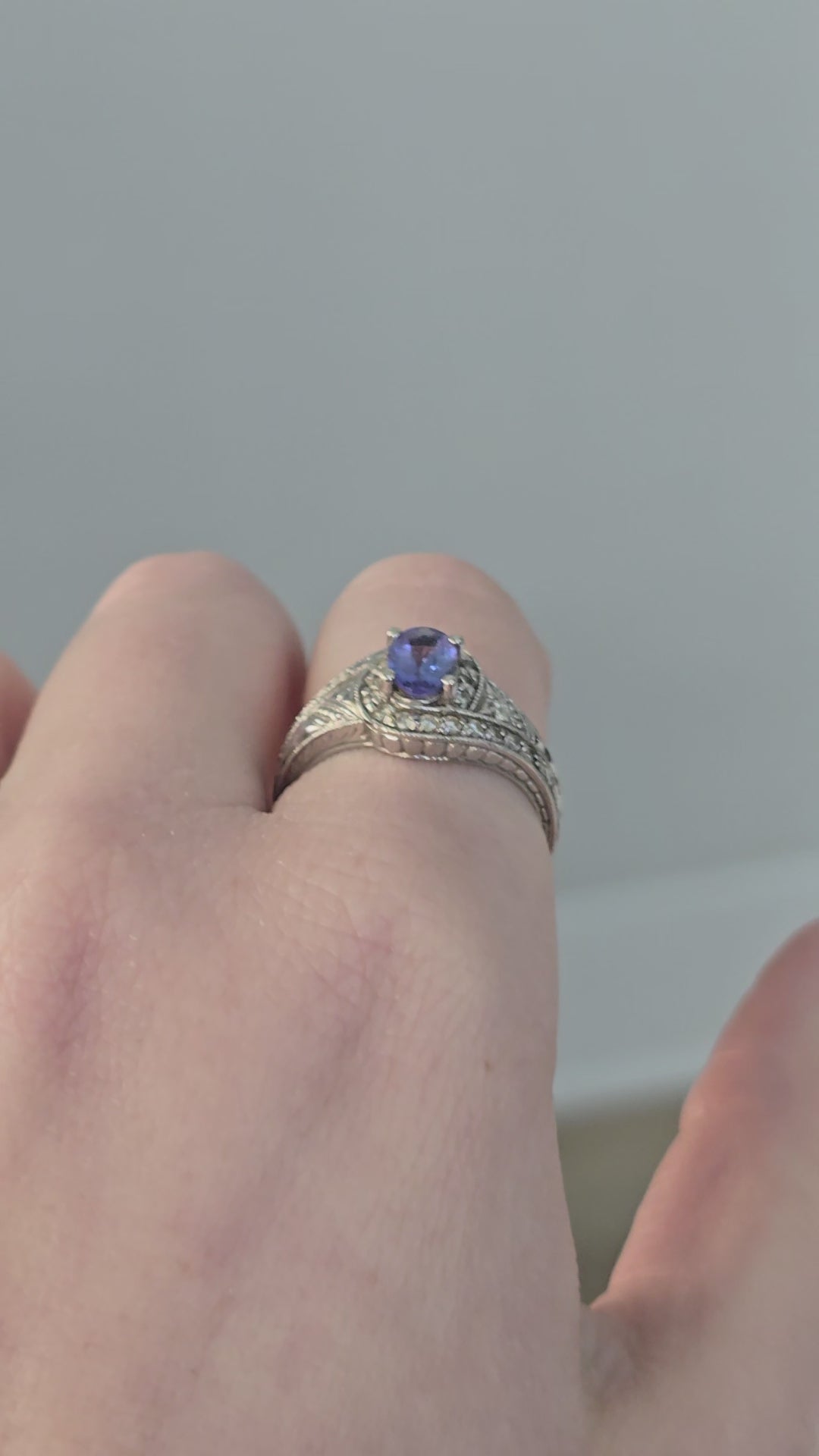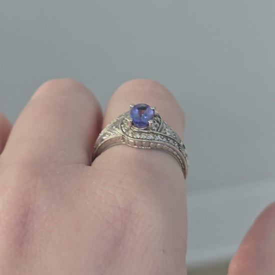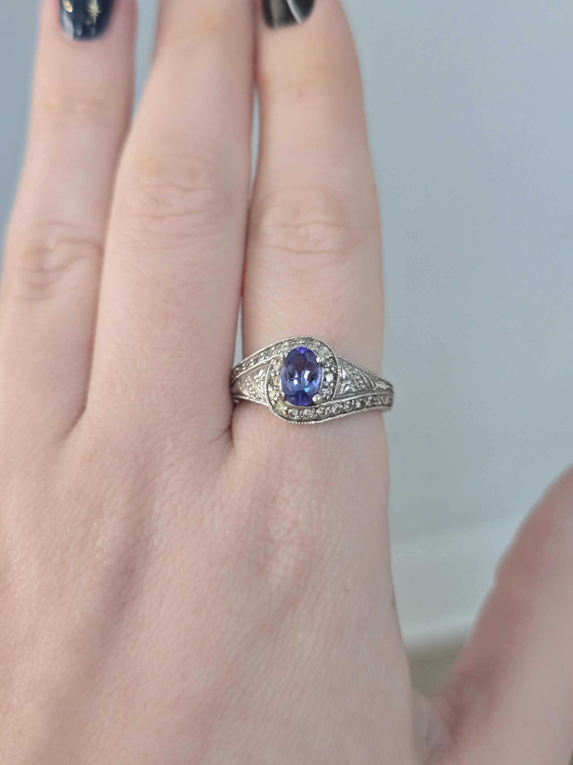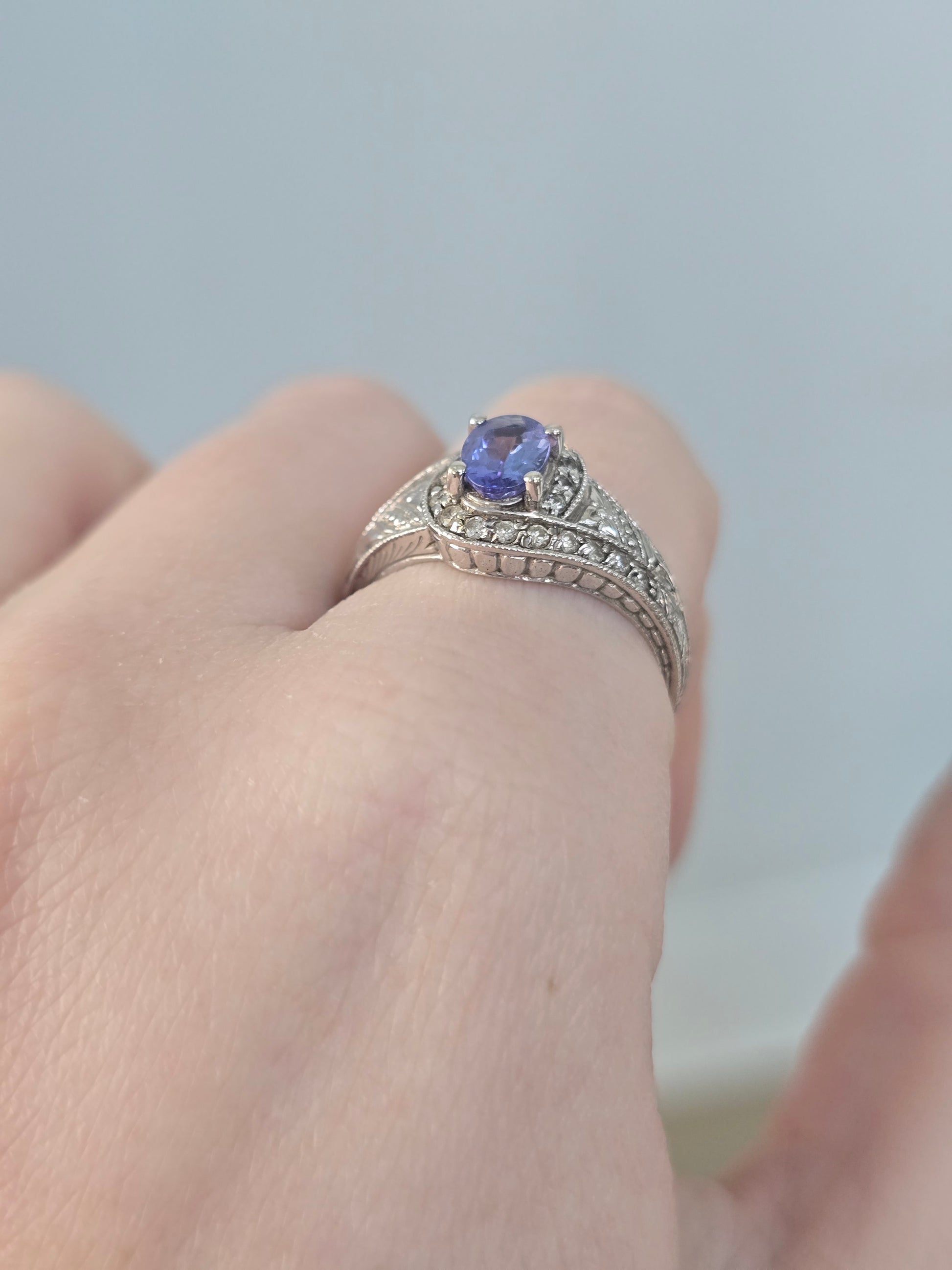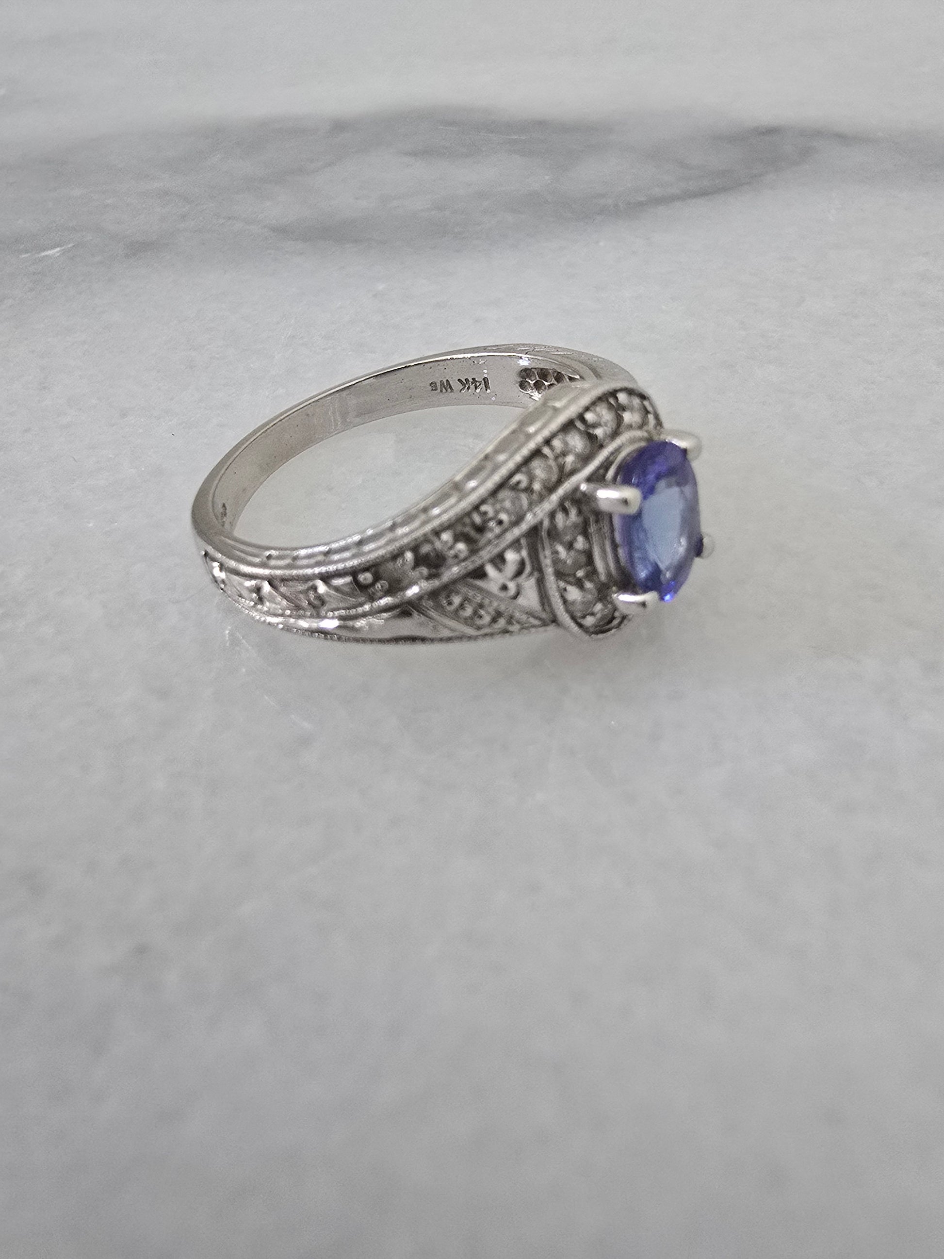 14k White Gold Tanzanite and Diamond Ring