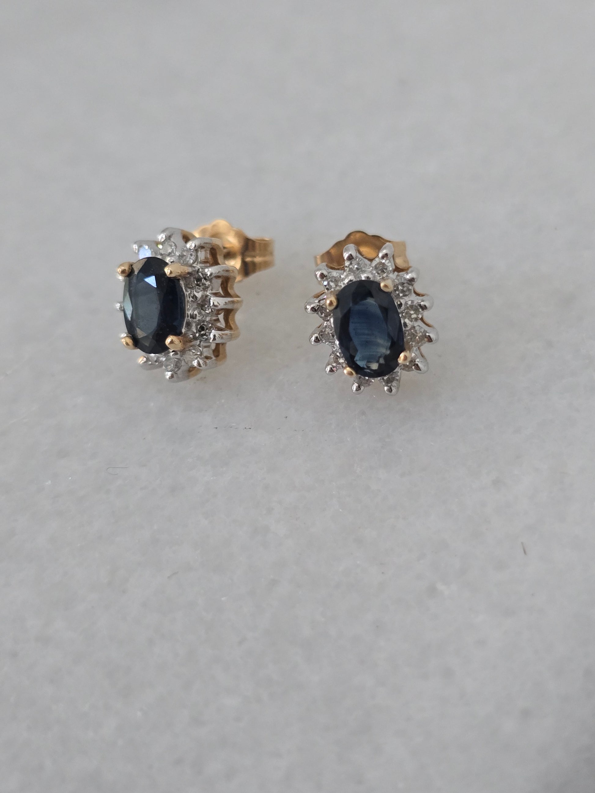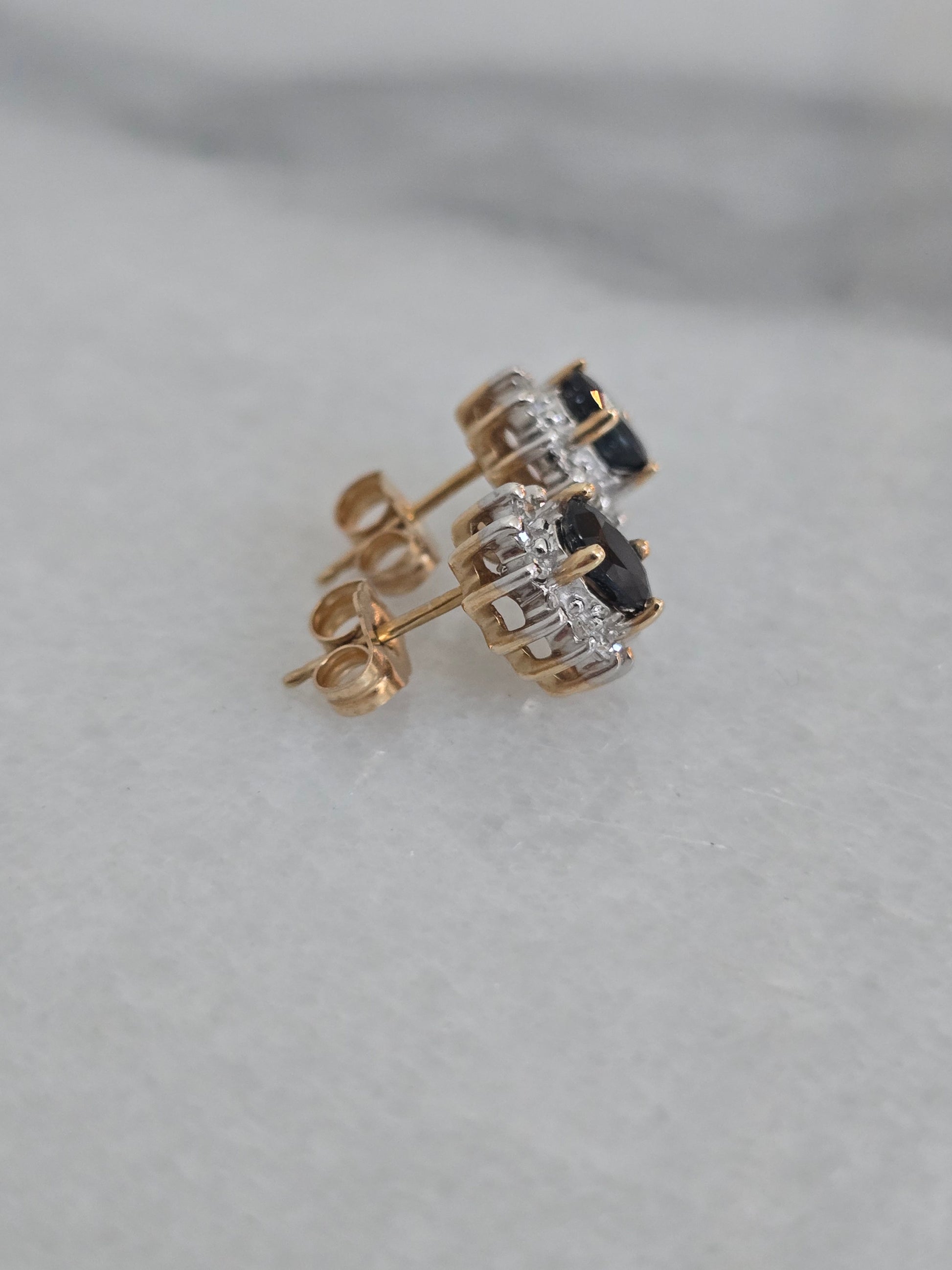 14k Yellow Gold Sapphire Diamond Halo Stud Earrings