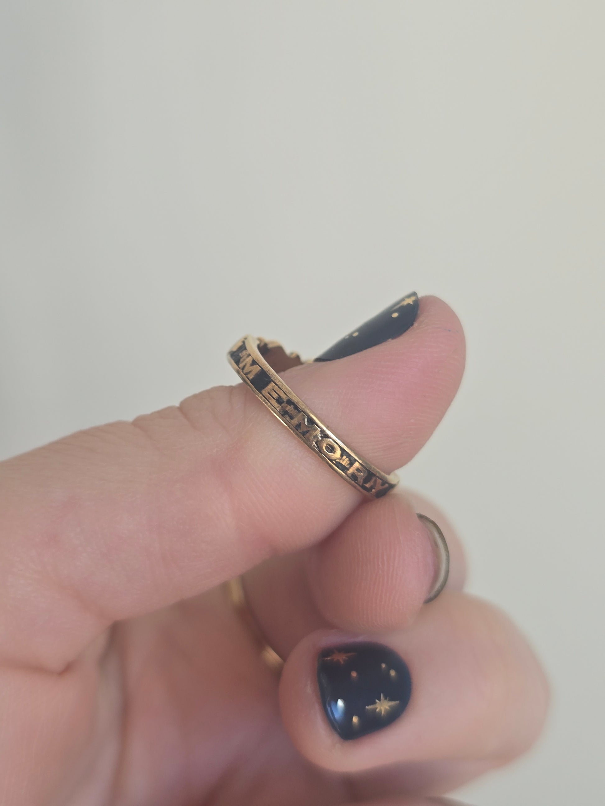 enamel. The black enamel band with the lettering IN MEMORY OF,