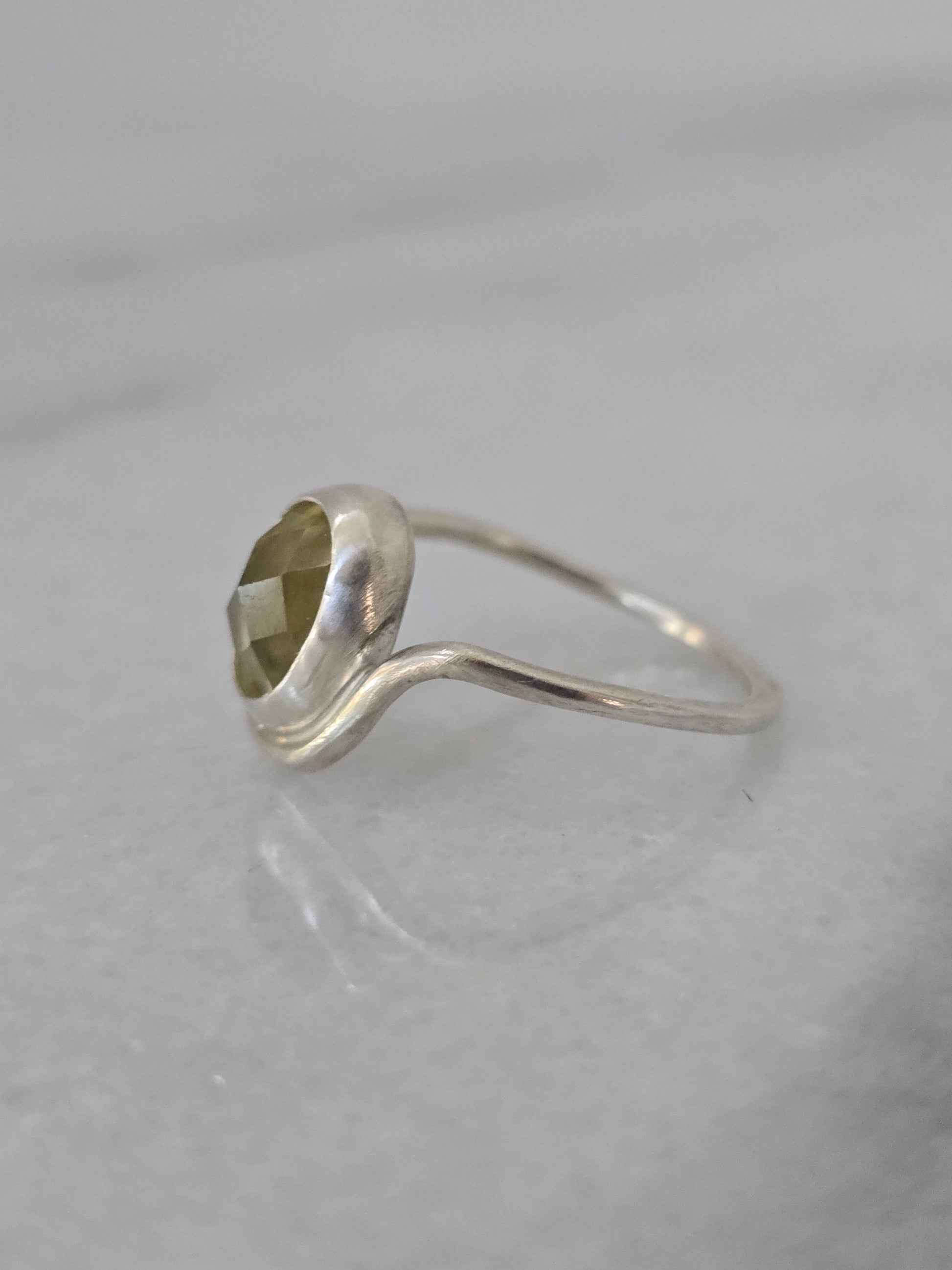 Radiant and uplifting, the Sunbeam Ring features a luminous lemon quartz set in a smooth sterling silver bezel. Its warm, golden hue evokes sunlight, while the gently curved band adds graceful movement to the design.